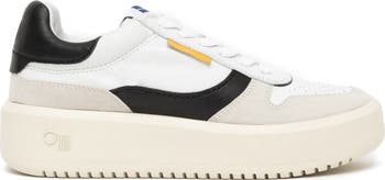 A colorblocked leather upper lends striking detail to a casual sneaker built on a durable rubber sole to support each stride.