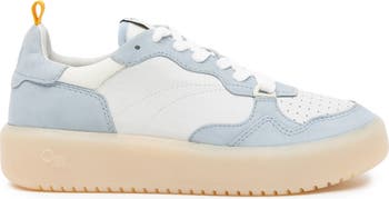A perforated toe and chunky rubbed cupsole add sporty appeal to this low-top sneaker rendered in colorblocked suede overlays.