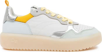 A perforated toe and chunky rubbed cupsole add sporty appeal to this low-top sneaker rendered in colorblocked suede overlays.
