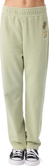 A pastel graphic with tropical blooms rests at the hip and keeps the feeling beachy in these cotton-rich fleece sweatpants.