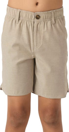 Stretchy fabric and elastic in the waist bring all-activity comfort to kid-size chino shorts made with a smart flat front and scalloped hems for easier movement.