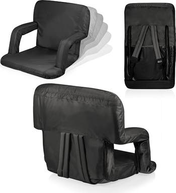 With six backrest positions, padded armrests, and high-density foam padding, "Backpack Chair" only begins to describe the Ventura Portable Reclining Stadium Seat, a lightweight and highly-portable stadium chair, beach chair, game chair, and straight-up recliner! The lightweight steel frame, sturdy polyester canvas, water-resistant bottom, large exterior zipper pocket, and adjustable shoulder straps make this your go-to travel chair. Perfect for sports spectating in comfort, whether you're watching the pros or your kids (future pros).