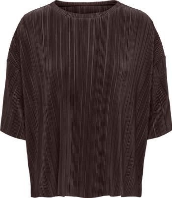 Fine plissé pleats define this day-to-night top, styled with a crewneck and abbreviated sleeves.