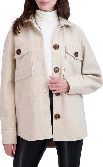 Achieve a layered look with this classic shirt-jacket cut in a relaxed silhouette from brushed faux wool.