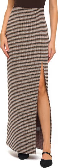 Houndstooth Front Slit Maxi Skirt