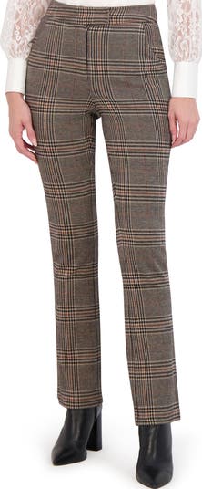 Elevate your work wardrobe with classy plaid pants constructed from a soft, stretchy knit in a mini-bootcut silhouette.