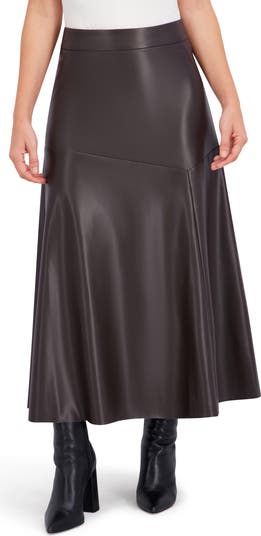 Geometric panels bring modern dimension to this ultrasoft faux-leather maxi skirt cut in a flowy A-line silhouette.