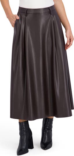 Elegant pleats and handy pockets frame this ultrasoft faux-leather maxi skirt cut in a flowy A-line silhouette.