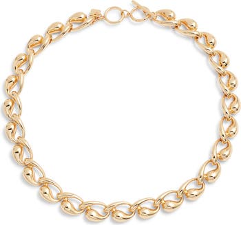 Asymmetric teardrop links catch the light on this layerable collar necklace that brings instant shine to any look.