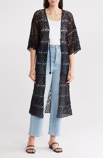 Add a lightweight, boho layer to your warm-weather style with this long open-knit cardigan made from cotton.