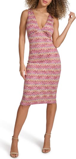 Familiar zigzags wash waves of color across this summertime, midi-length dress knit from soft yarns.