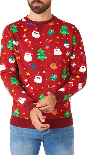A bright and cheerful Christmas-themed pattern accents this long-sleeve sweater that's ideal for the season.