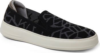 A flexible knit slip-on sneaker features stretch goring for an easy fit and a contoured footbed for enhanced comfort. The knit design is breathable and lets air flow freely to help keep feet cool. A soft lightweight molded sole provides durability and shock absorption along with stability and flexibility. A contoured footbed with arch support is lined in soft quilted microfiber, while a flexible EVA outsole provides lightweight shock absorption.