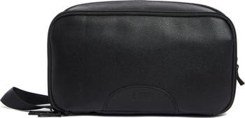A sleek dopp kit with a convenient zip closure and side handle offers easy access to your toiletries, making travel simpler and more organized.