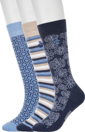 Add a pop of pattern to your look with this trio of assorted crew socks complete with the brand's signature penguin embroidery.