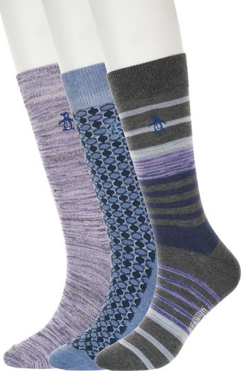 Add a pop of pattern to your look with this trio of assorted crew socks complete with the brand's signature penguin embroidery.