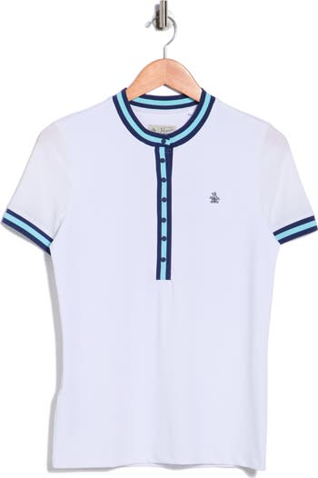 A button half placket and contrast trim make this sporty golf knit T-shirt versatile on and off the course.