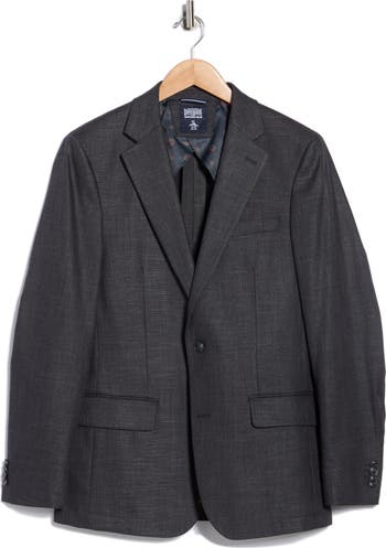 Tailored from sharkskin fabric, this versatile grey blazer features plenty of stretch to keep you looking sharp and feeling comfortable.