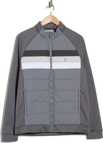 Insulated quilting defines the front of this sporty fitted jacket that keeps your muscles warmed up on cooler outings.