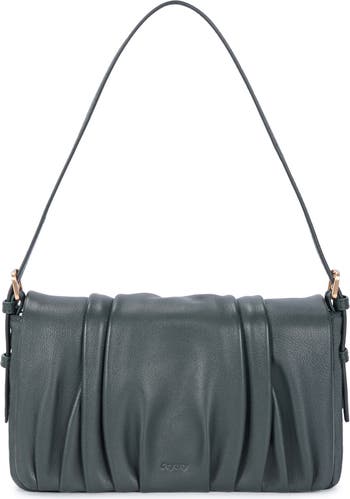 Pleated lambskin leather brings dimension to this scaled-down shoulder bag framed by a foldover flap and a convertible handle that adjusts to a crossbody strap for versatile wear.