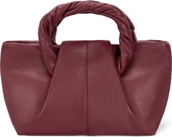 A scaled-down tote bag composed of pebbled leather features optional wear with twisted carry handles or an adjustable crossbody strap.