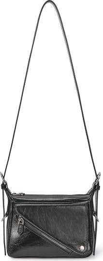 A cracked finish lends vintage-inspired moto vibes to a compact crossbody bag that keeps you organized with plenty of pockets.