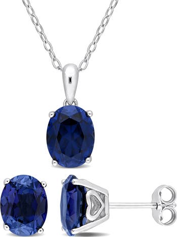 This giftable set includes bold stud earrings and a pendant necklace illuminated by sparkling created sapphires.