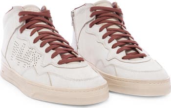 Side logo perforations lend signature appeal to a high-top leather sneaker designed with comfortable cushioning and set in a hand-distressed cupsole.