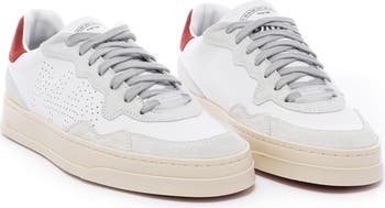 Side logo perforations lend signature appeal to a low-profile leather-and-suede sneaker designed with comfortable cushioning and a sporty cupsole.