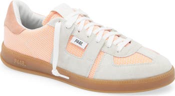 A playful combination of velvety suede and colorful speckles defines this court-inspired sneaker furnished with a comfortably cushioned insole.