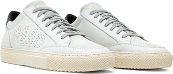An iconic logo perforates the side of this low-top leather sneaker set on a platform sole and elevated with a silvery textured tongue and suede accents.