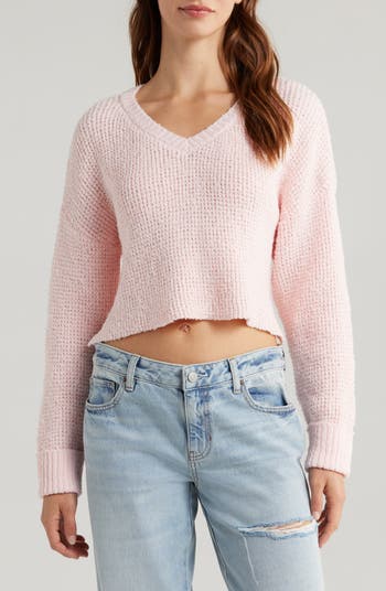 Build out your season-spanning wardrobe staples with this classic V-neck sweater refreshed in a boxy, cropped silhouette with slouchy dropped shoulders.