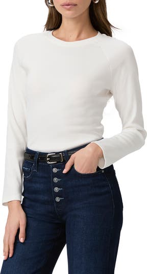 Fine allover ribbing and comfortable stretch enhance a figure-skimming fit on this versatile wear-anywear top.