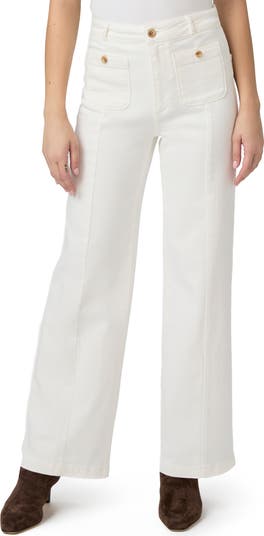 These stretch-denim jeans feature buttoned patch pockets interrupting the lean lines of the center seams that add to the leg-lengthening effect of the high waist and full inseam.