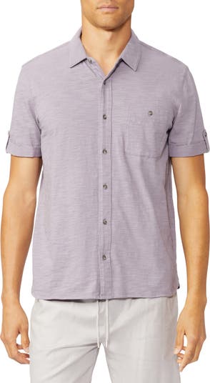 Crafted from pure cotton slub jersey, this shirt serves as a warm-weather favorite that features relaxed, rolled sleeves and a classic fit.