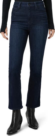 Add a fashion-forward edge to your look with cleanly styled, ankle-grazing flare jeans made from vintage-inspired stretch denim in a polished dark wash.