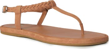 A braided strap and centered toe post bring contemporary appeal to a minimalist sandal grounded by a cushioned footbed for lasting comfort.