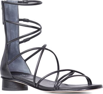 A back zip closure helps you easily get into and out of this gladiator sandal lined with supple leather and raised on a low block heel.