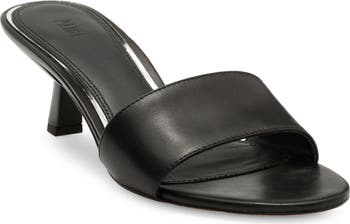 A go-to slide sandal features a single, classic strap and kitten heel for walkable comfort.