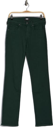 Supersoft TRANSCEND stretch denim in a deep-green hue brings smart-casual, cool-weather style to these slim-fitting straight-leg jeans.