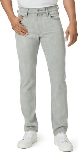 An evenly faded light-grey wash lends casual-cool style to slim-cut straight-leg jeans made from soft, shape-retaining TRANSCEND stretch denim.