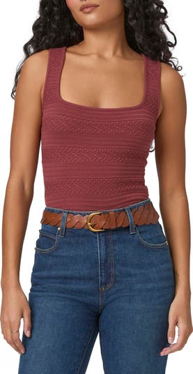 Mixed stitches texture a lightweight sweater-tank knit with a deep U-neck to show some skin.