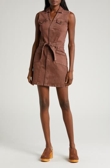 A tie belt hugs your silhouette beautifully when you slip into this stretch-denim shirtdress elevated by princess seams and anchored by handy pockets.