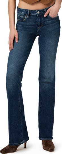 Vintage inspired yet very of the moment, these stretchy bootcut jeans feature a mid-rise waist, seamed belt loops and dramatic, extralong legs.