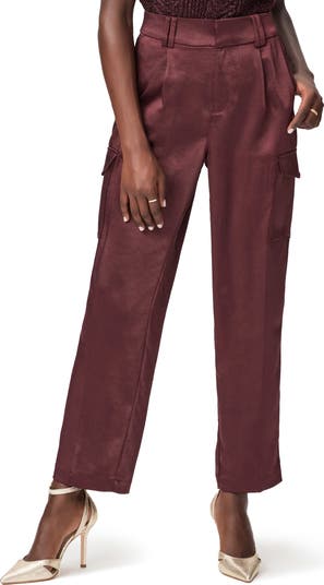 Slip into streetwear style with these straight-leg pants crafted from glossy satin with and popped with handy cargo pockets.
