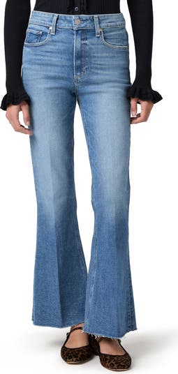 Shorter than typical flare jeans, this high-rise pair is made from shape-retaining, vintage-inspired stretch denim and finished with raw hems.
