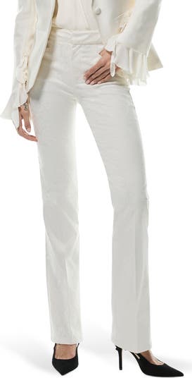 These sleek trousers made with a clean front and raw hems is made from soft, stretchy cotton blend.