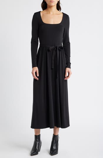 A fluid drape and a romantically squared neckline define an endlessly wearable dress that's easy to style up or down.