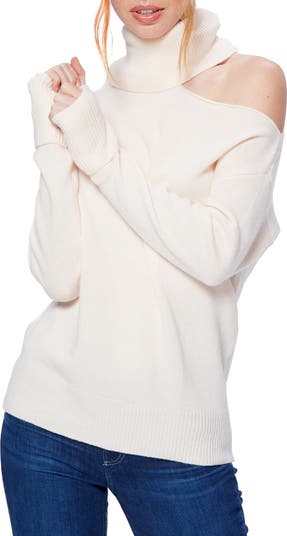 Now you can show a little shoulder even in a sweater with this wool-infused style with a slit above one sleeve to spice up your look with a dash of asymmetry.
