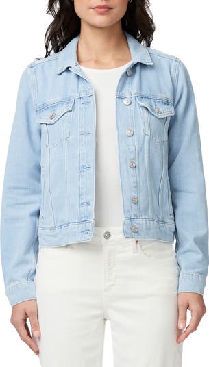 Intentional distressing gives lived-in attitude to a beautifully washed denim jacket hinted with gleaming silvertone buttons.